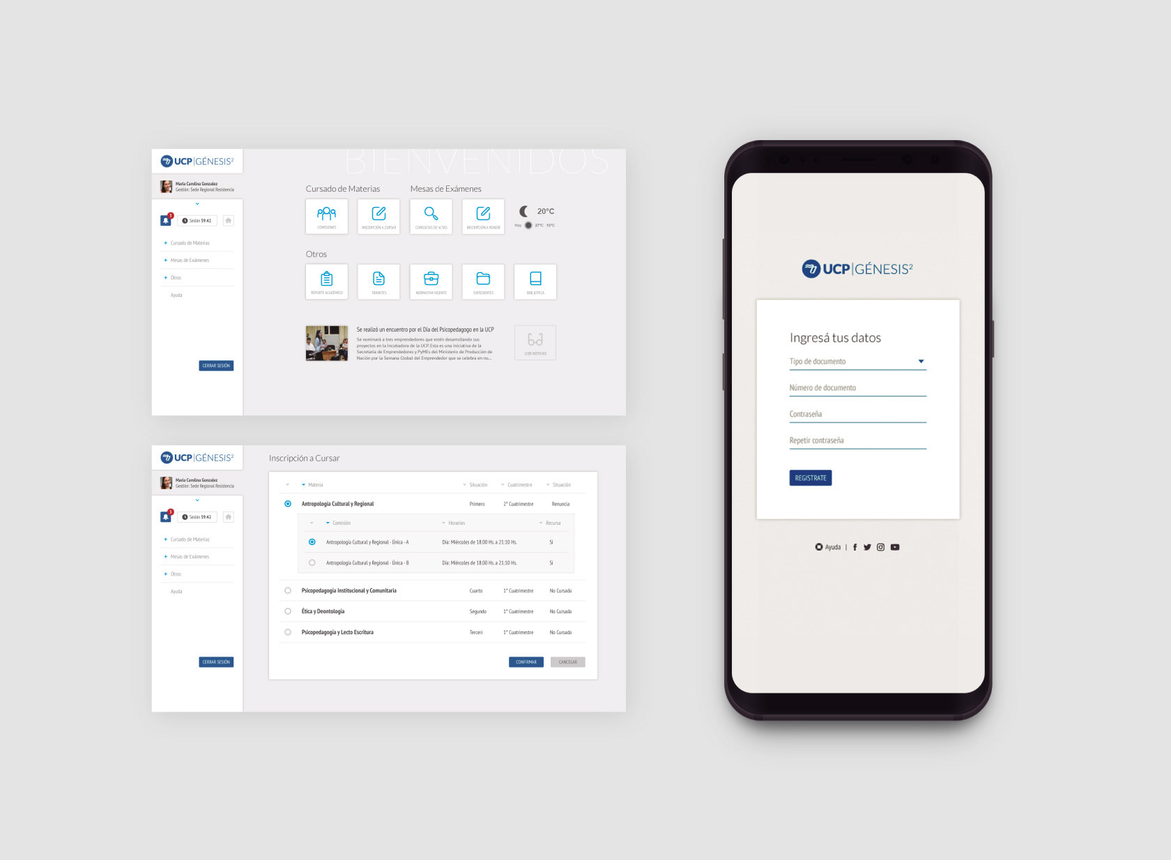 Trabajé en el diseño de la interfaz y la experiencia del Sistema de Gestión Génesis, una plataforma interna de la Universidad de la Cuenca del Plata. El proyecto se enfocó en crear una experiencia fluida y accesible para que los estudiantes pudieran gestionar sus asistencias, consultar resultados de exámenes, revisar materias, acceder a información académica, entre otras funcionalidades clave.