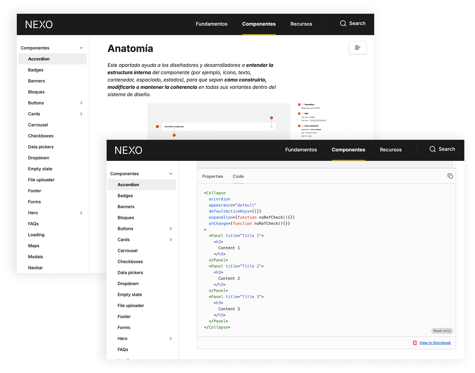 Esto permite a los equipos ver los componentes reales funcionando, validar estados y variantes, y reducir errores al momento de implementarlos en productos.