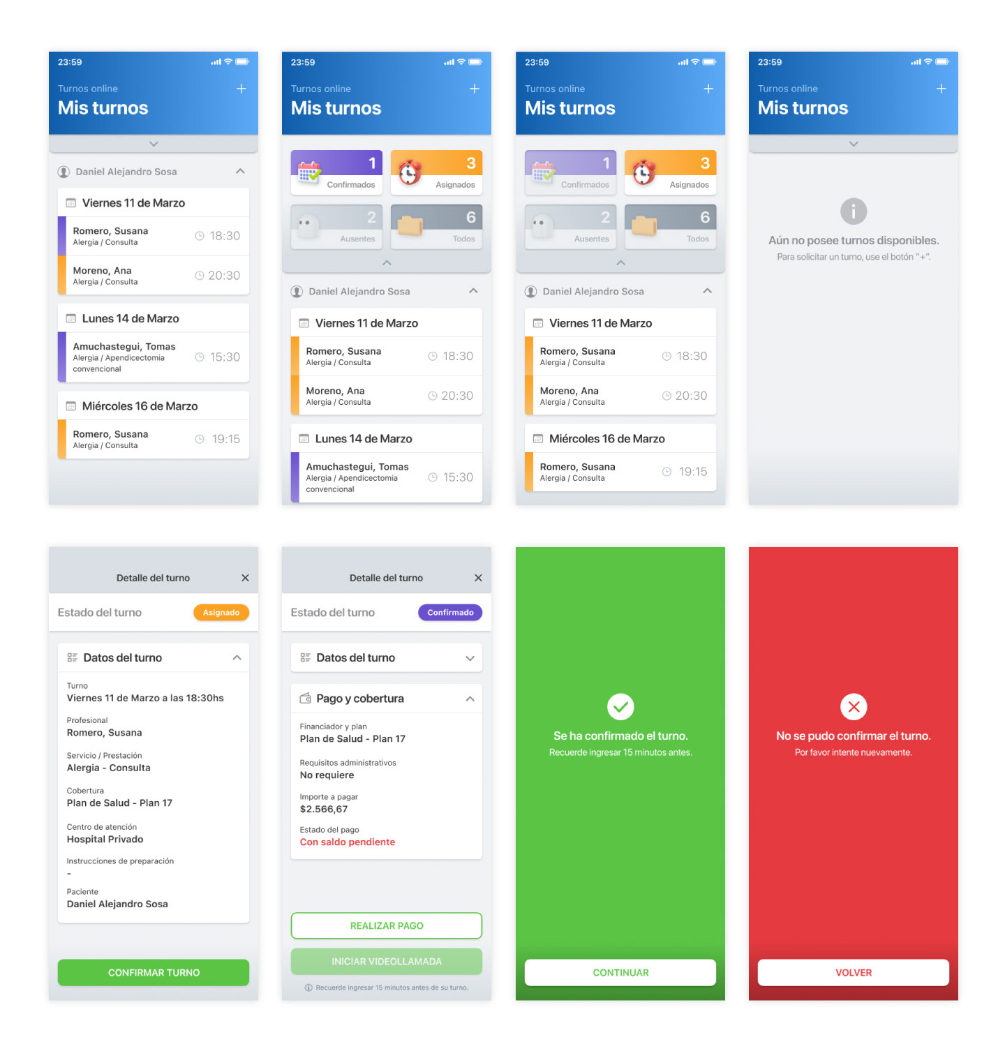 Para el proyecto de Turnos Online trabajé en el diseño de la aplicación y su experiencia, orientada a que los usuarios puedan solicitar y gestionar turnos médicos de manera simple y rápida. El proyecto incluyó el relevamiento completo de flujos, la realización de pruebas con usuarios y la optimización integral de la experiencia. El resultado fue una app más clara, eficiente y alineada a las necesidades reales de quienes la utilizan.